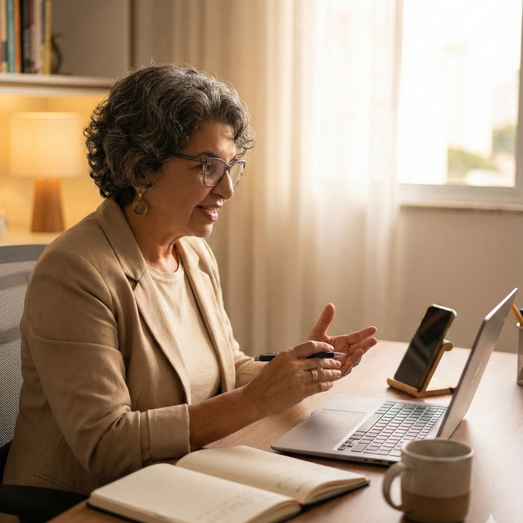 Sou psicóloga clínica e terapeuta sistêmica. Me formei depois dos 45, depois de muitos anos vivendo no modo “eu dou conta”, entre família, trabalho e expectativas dos outros.